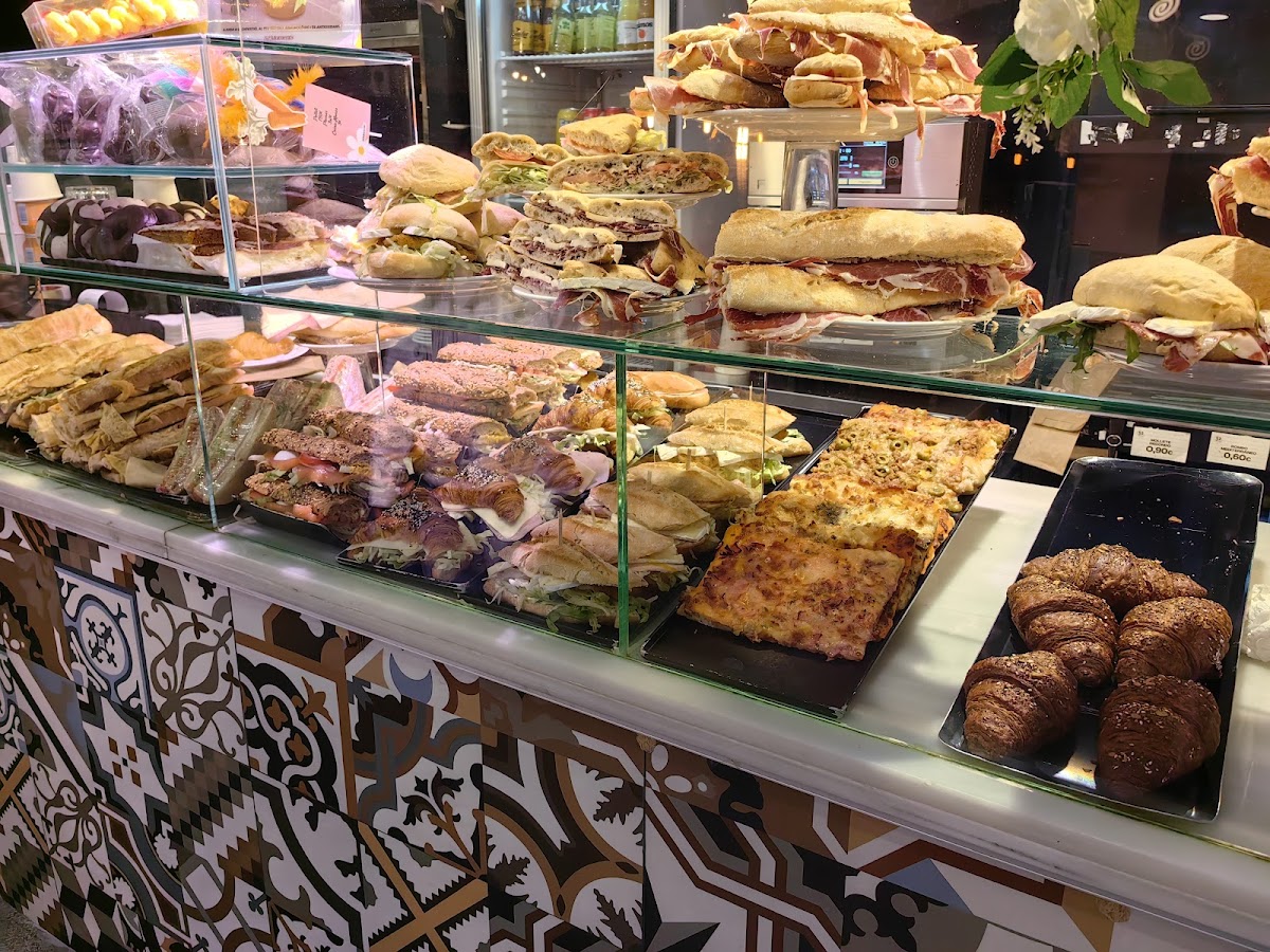 A corner cafe for the most delicious coffee, fresh squeezed orange juice, croissants, sandwiches and many more. We came 2 days in a row for breakfast and tried a number of croissants including plain, chocolate, with cream; with jamon/cheese and jamon baguette. Everything is delicious and fresh. Fresh squeezed orange juice is a little expensive 3.90€ but soo good. I had one of the best coffees here out of the 3 cities in Spain. Service here is efficient and friendly even though there is always a line. Súper !